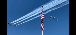 A couple of weeks ago there was a fly over by the Blue Angels and the Thunderbirds . We couldn't see it from our house, but my nephew and his family went to a place where they could see them. My nephew shared a picture he took. It was such a great picture that I had it made into a poster.